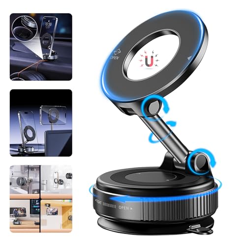 MiiKARE 2025 Upgraded Magnetic Phone Holder 360° Rotating Vacuum Magnetic Car Phone Holder for Magsafe,Adjustable&Foldable Magnets Car Phone Mount for Cars/Gym/Mirror/Shower for iPhone&Android,Black