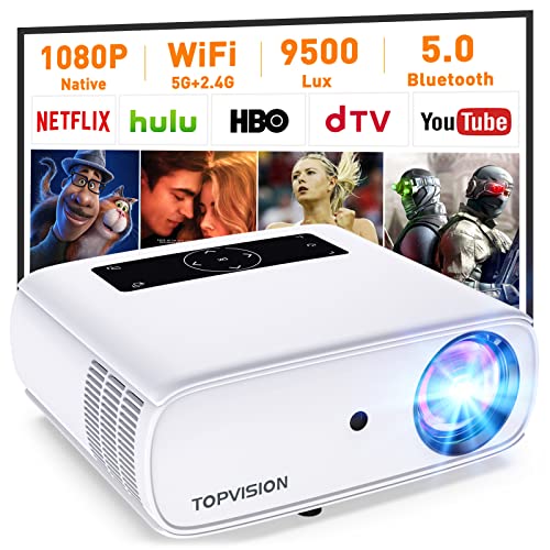 WiFi Projector, 5G Mini Projector 9500L Full HD Native 1080P Video Bluetooth Projector 4K, Portable Home Outdoor Wireless Mirroring Projector Compatible with iPhone/Android/TV Stick/HDMI/USB white