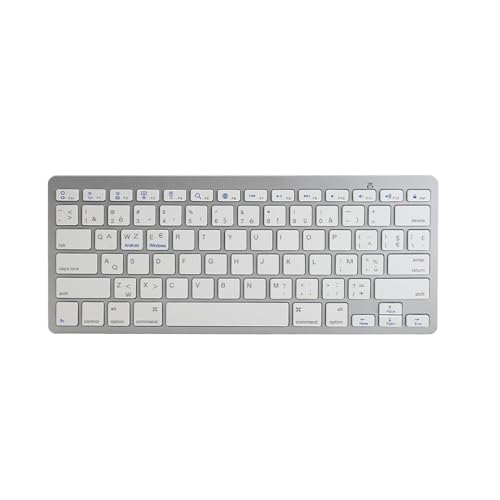HUSHUI Wireless Bluetooth Keyboard, Ultra Thin Portable Bluetooth Keyboard with 10m Range, Scissor Switch Keys, for Android SmartTV OS X Devices (French AZERTY Layout)