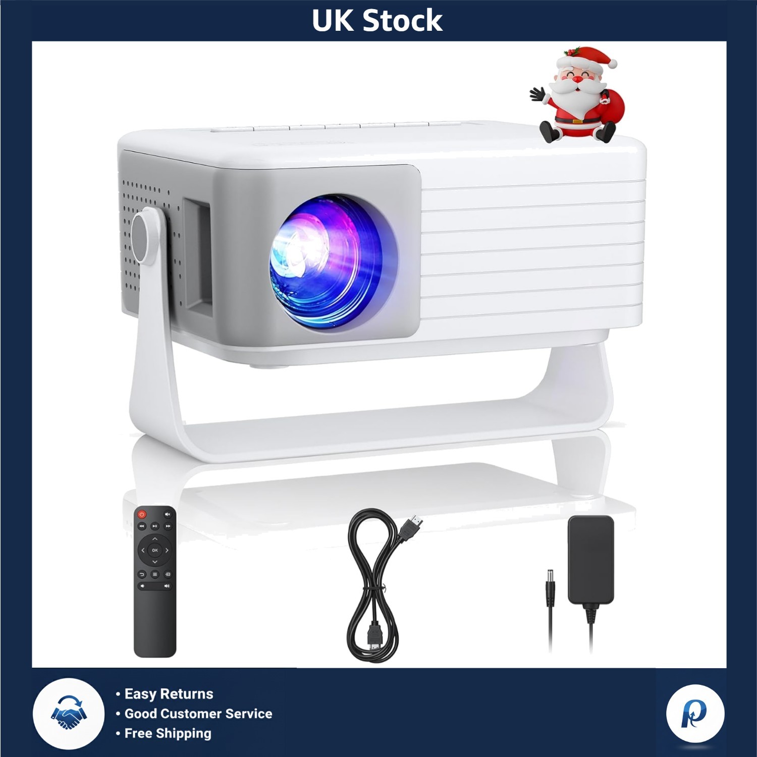SEWENS - Mini HD Projector, Powered by Powerbank, 10000 Lumens Portable with Tripod for Outdoor Travel Cinema, Compatible with Android/iOS/Windows/TV Stick/HDMI/USB