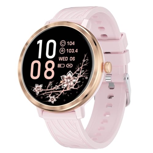 JONVOH Smart Watch for Men and Women - IOS Android Compatible Smartwatch with Touch Screen - Integrated GPS Fitness Tracker SyncLife Dazzle - Pink