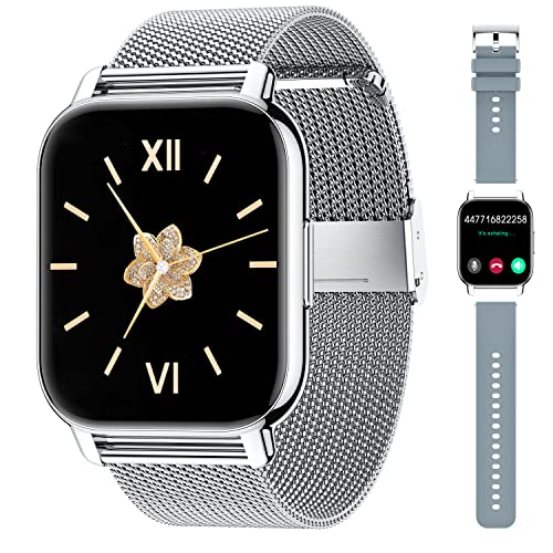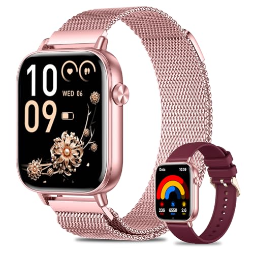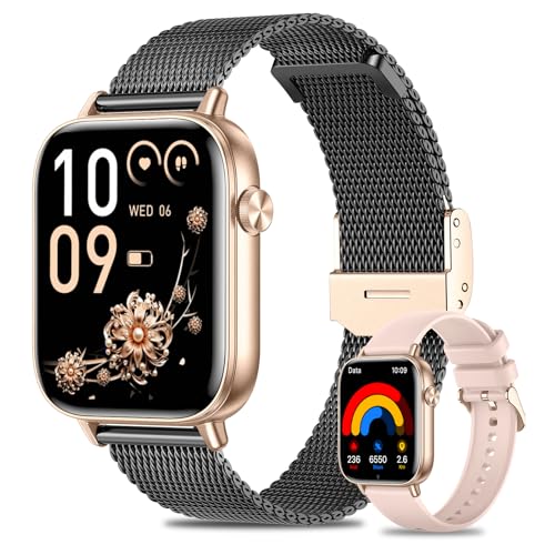 Popglory Smart Watch for Women Men Answer/Make Calls,Smartwatch 2 Straps & Split Screen, 100+ Sports Fitness Watch with Blood Pressure/Oxygen/Heart Rate Monitor for iOS and Android