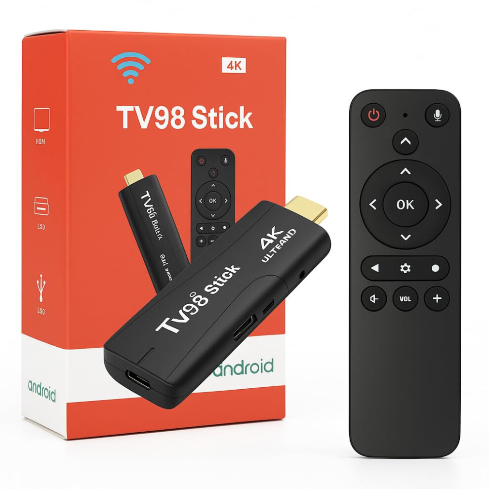 Hihting Android TV Stick 4K Mini Smart Tv box DDR4 2GB RAM 16GB Quad-Core 64bit Dual 2.4G/5G WiFi HDR10+ Ultra USB HD Smart TV STICK Box Streaming Me