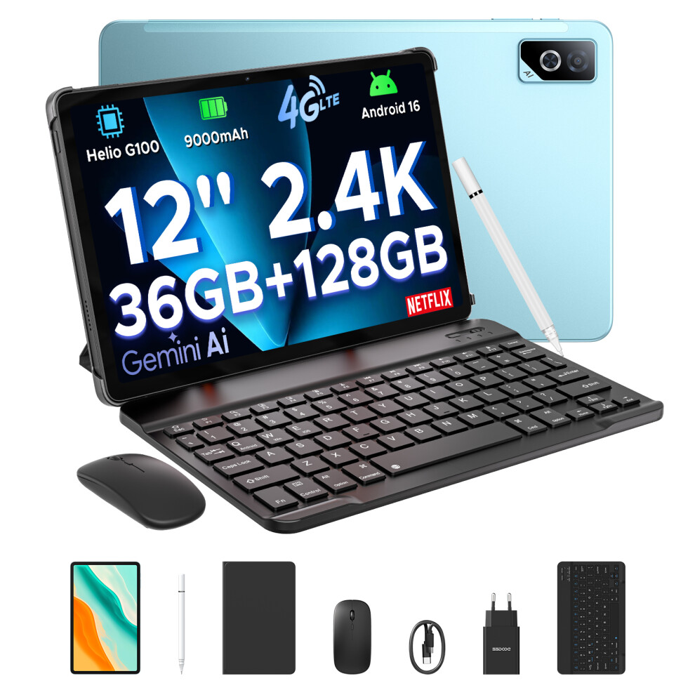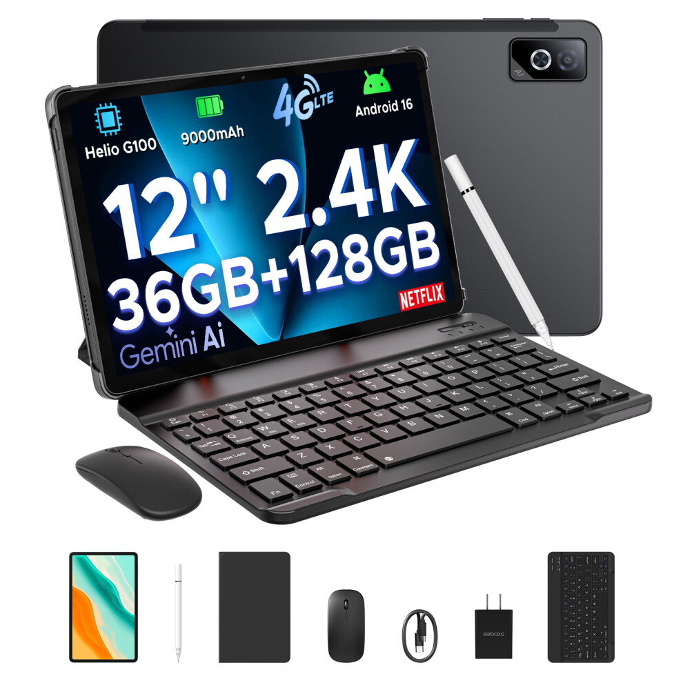 DOOGEE Tab G6 Pro 12 Inch 2.4K Tablet, 2026 Newest Android 16 Tablet with Keyboard, Helio G100, 36GB+128GB/2TB, 9000mAh, Tablet with Pen, Mouse&Case