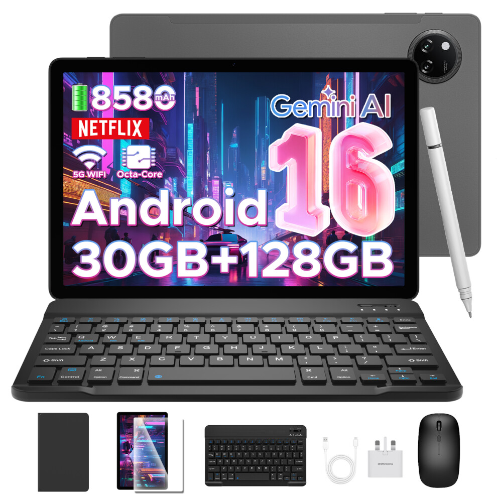 11 Inch Tablet Android 16 with Keyboard, 24GB RAM + 256GB ROM (2TB Expand), T7250 Octa-Core, 1920x1200 IPS FHD Display, 16MP+8MP Dual Camera, Gemini AI, GPS, 2.4G/5G WiFi, 8000mAh, Widevine L1