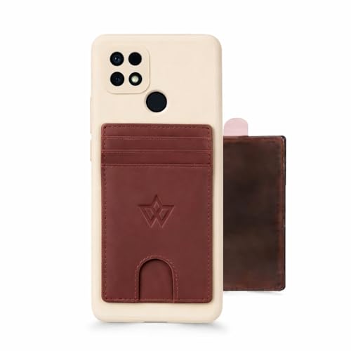 WASAMA Unisex Leather Stick-on Card Holder Colours Available | Multiple Card Slots, for iPhone or Android case | RFID Protection | The Handy (Plain, Merlot Wine Brown, Regular 3 Card)