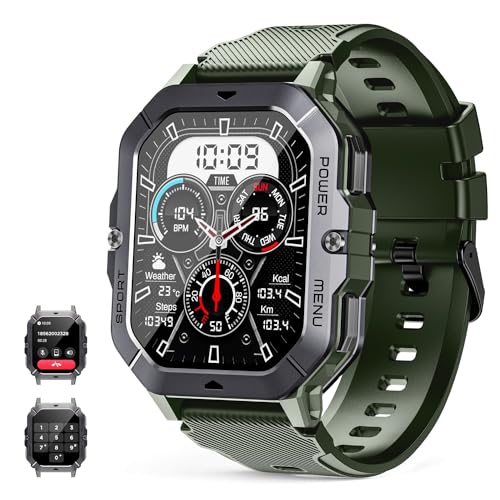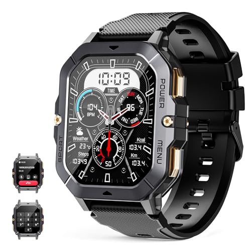 Smart Watches for Men with Bluetooth Call Rugged Outdoor Smartwatch Mens Fitness Tracker Calories/Steps Countor/Heart Rate/Blood Oxygen/Blood Pressure/Sleep Monitor Compatible with Android iOS Phones