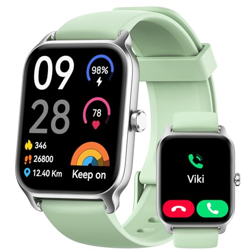 Smart Watch for Men Women, Answer/Make Calls, Alexa Built-in, [1.8"HD Screen] Smart Watches for iPhone/Samsung/Android, Fitness Watch with Heart Rate Sleep SpO2 Monitor,IP68,100+ Sports-Green