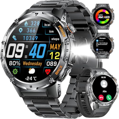 LIGE Military Smart Watch for Men, Flashlight 100+ Sports Modes Fitness Tracker Smartwatch, 1.43'' AMOLED Display, 5ATM Waterproof/Sleep Monitor, Mens Smart Watches for Android iOS