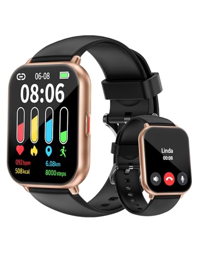 JUSHZ Android Smart Watch for Men Smart Watches for Women Smartwatch with Call Function Call and Text Wristband Bluetooth Calling Play Music Take Pictures Step Counting (Black A)