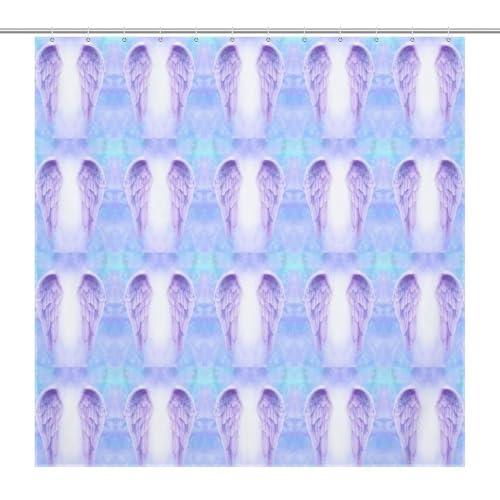 Nugier Shower Curtain with 12 Hooks, Waterproof Bath Curtain Liner Machine Washable Polyester Tub Stall No Smell 56"(W) x71(H) Print Fantasy Angel Wings Purple