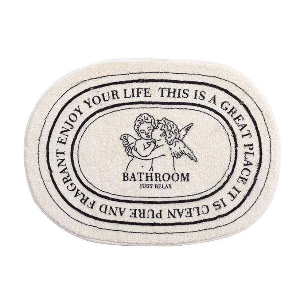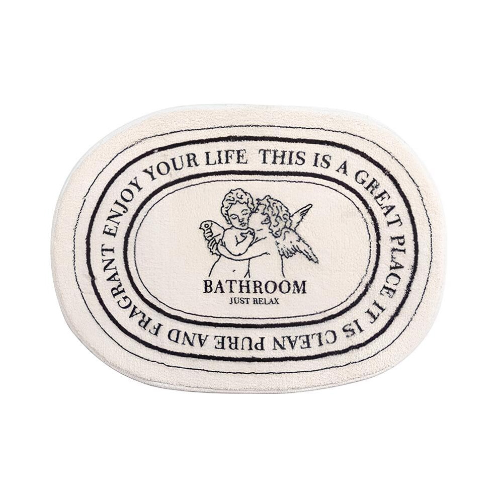 (Black and White, one-size) Angel & Letter Pattern Bathroom Mat, Non-slip Soft Bath Mat, Angel Design Oval Shaped Non-slip Bath Mat, Summer