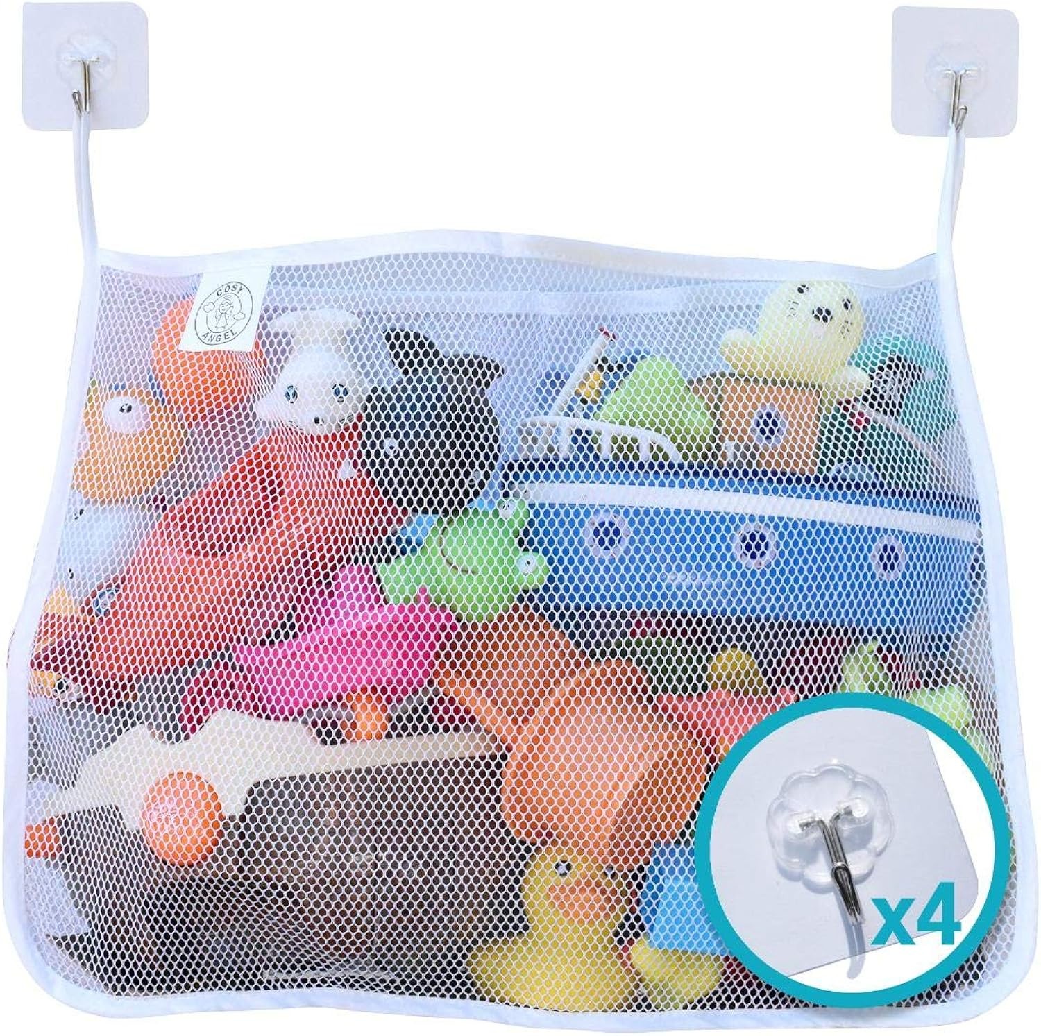 COSY ANGEL Baby Bath Toy Storage Bag with 4 Self-Adhesive Hooks Large Mesh Organ