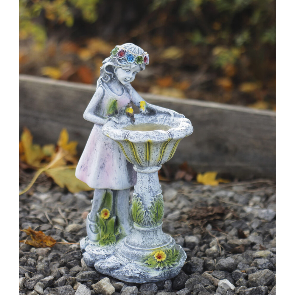 Solar Lighted Girl by Bird Bath Sculpture -Garden Resin Figurines Statue Angel Figure Sculpture Flower With Solar LED Light Decor Ornament for Patio,Lawn,Yard Very personal(A)
