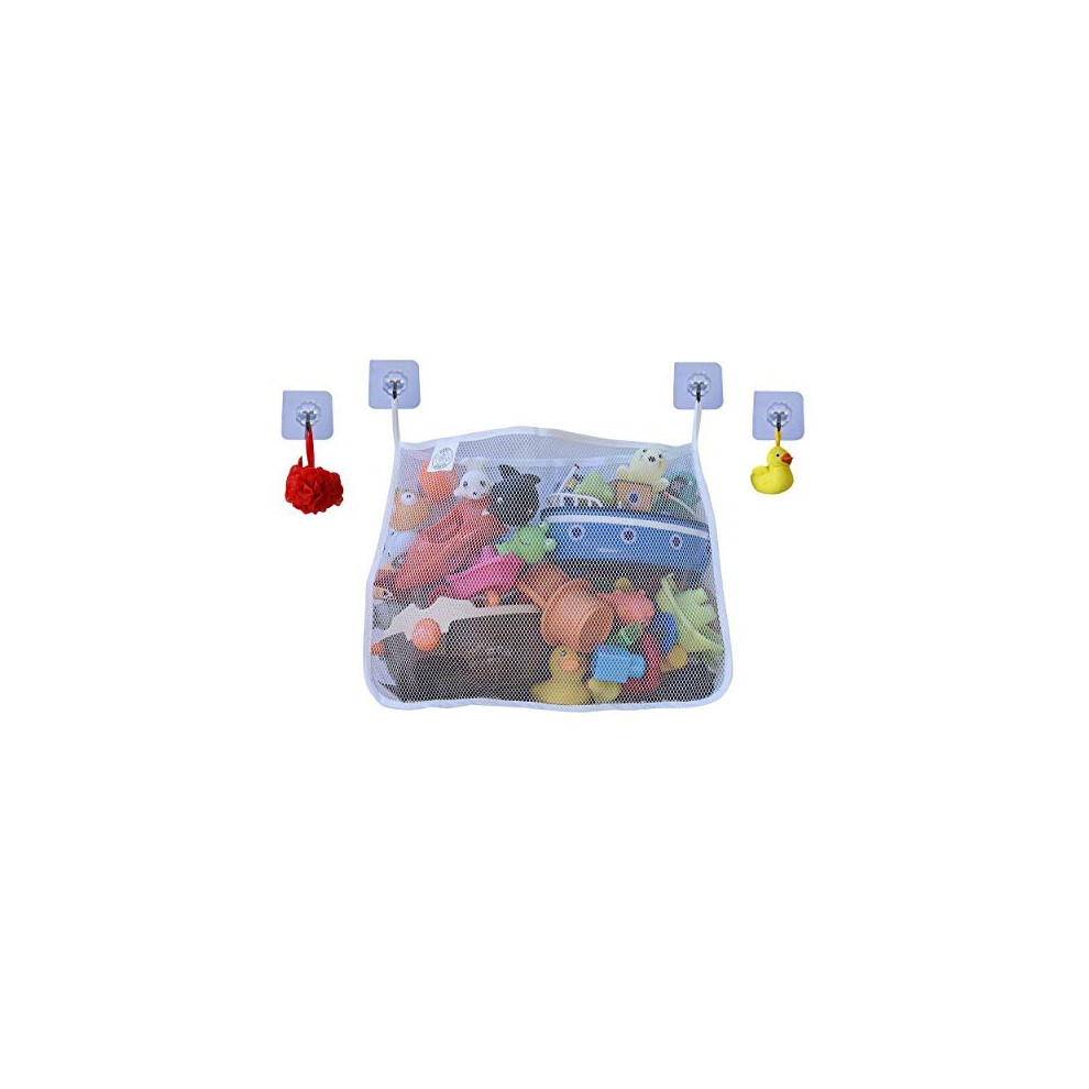 COSY ANGEL Baby Bath Toy Bag for Bath Toys Large Organiser Bathroom Storage Net with 4 Waterproof Self Adhesive Hooks (White)