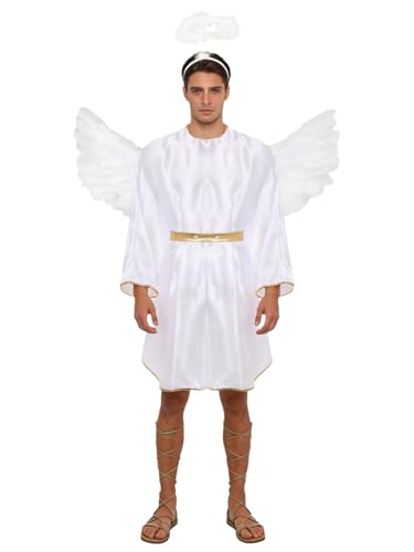 Runhomal Mens Angel Costumes Halloween Devil Fallen Angel Christmas Outfits with Headwear and Wings White L