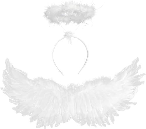 WEILONGB White Angel Wings and Halo, White Wings Adult,Angel Wings Adult,Costume Wings,Angel Halloween Costume,Fallen Angel Wings Costume for Adult and Kid