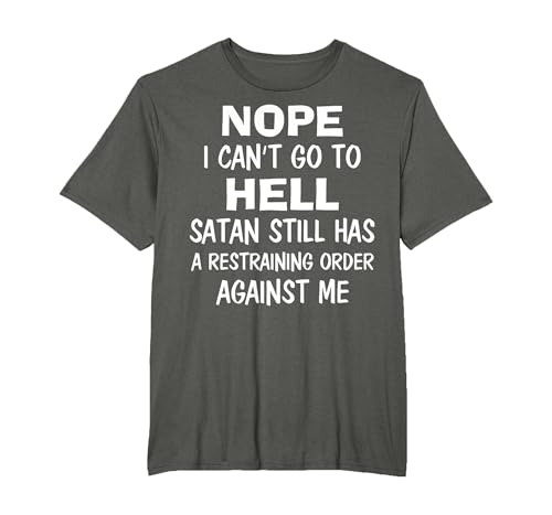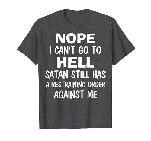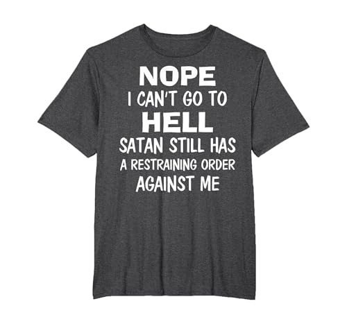 Nope I Can't Go to Hell Satan Still Has A Restraining Order T-Shirt, Men, Dark Heather Grey, X-Large