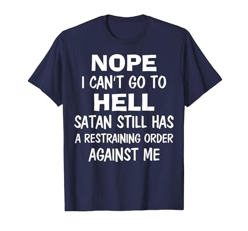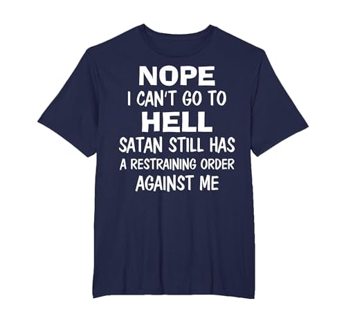 Nope I Can't Go to Hell Satan Still Has A Restraining Order T-Shirt, Men, Navy Blue, Large