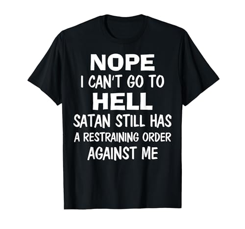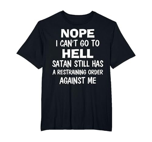 Nope I Can't Go to Hell Satan Still Has A Restraining Order T-Shirt, Men, Black, Small