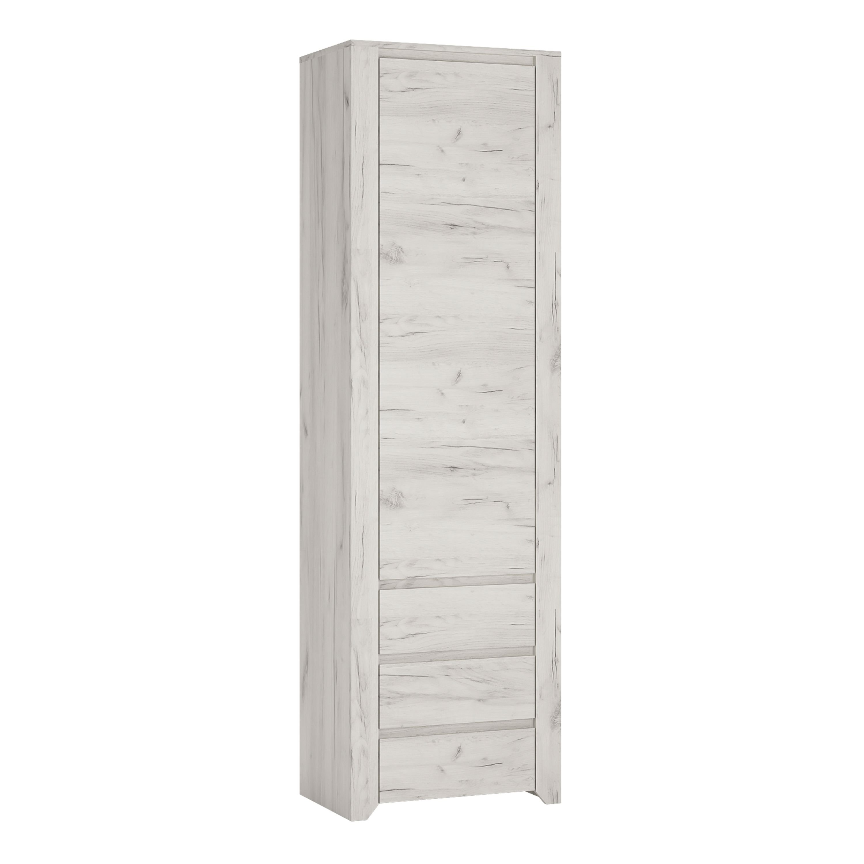 Angel Tall Narrow One Door 3 Drawer Narrow Cupboard In White Craft Oak