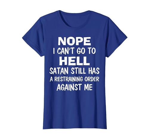 Nope I Can't Go to Hell Satan Still Has A Restraining Order T-Shirt, Women, Royal Blue, X-Small