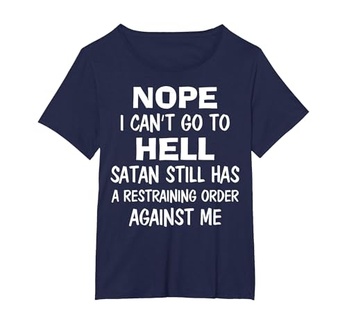 Nope I Can't Go to Hell Satan Still Has A Restraining Order T-Shirt, Women's Plus, Navy Blue, 5X