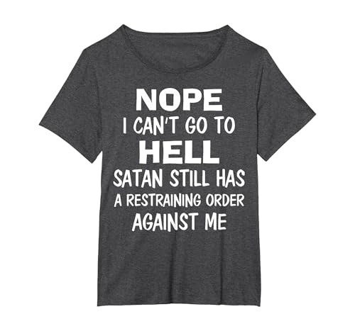 Nope I Can't Go to Hell Satan Still Has A Restraining Order T-Shirt, Women's Plus, Dark Heather Grey, 2X