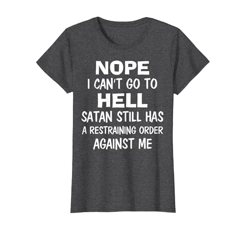 Nope I Can't Go to Hell Satan Still Has A Restraining Order T-Shirt, Women, Dark Heather Grey, X-Large