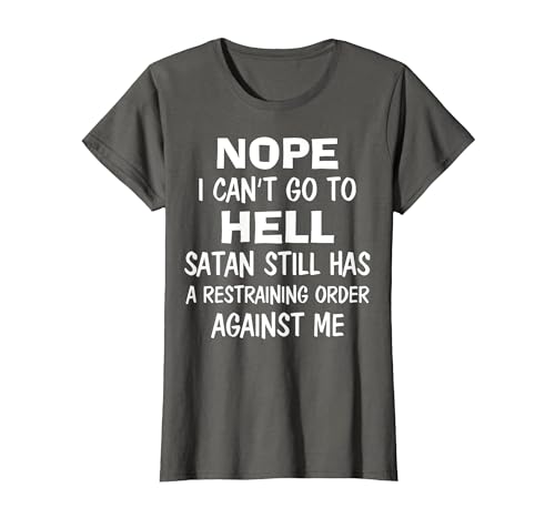 Nope I Can't Go to Hell Satan Still Has A Restraining Order T-Shirt, Women, Asphalt Grey, Small