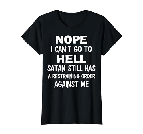 Nope I Can't Go to Hell Satan Still Has A Restraining Order T-Shirt, Women, Black, X-Small