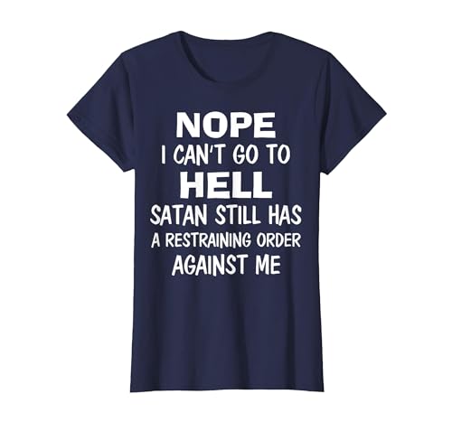 Nope I Can't Go to Hell Satan Still Has A Restraining Order T-Shirt, Women, Navy Blue, Small