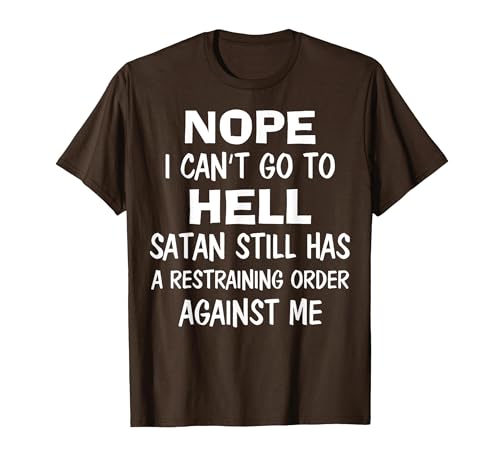 Nope I Can't Go to Hell Satan Still Has A Restraining Order T-Shirt, Men, Brown, Large