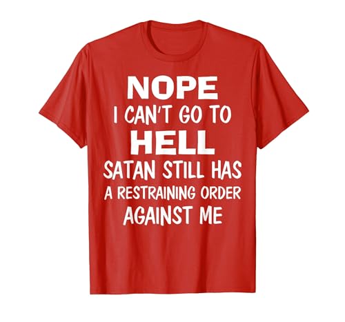 Nope I Can't Go to Hell Satan Still Has A Restraining Order T-Shirt, Men, Red, Small