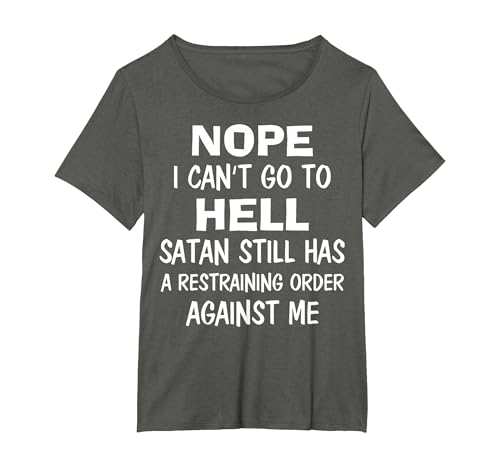Nope I Can't Go to Hell Satan Still Has A Restraining Order T-Shirt, Women's Plus, Asphalt Grey, 4X