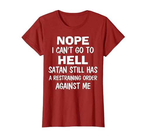 Nope I Can't Go to Hell Satan Still Has A Restraining Order T-Shirt, Women, Cranberry Red, X-Small