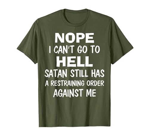 Nope I Can't Go to Hell Satan Still Has A Restraining Order T-Shirt, Men, Olive Green, X-Large