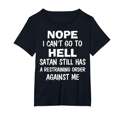Nope I Can't Go to Hell Satan Still Has A Restraining Order T-Shirt, Women's Plus, Black, 3X