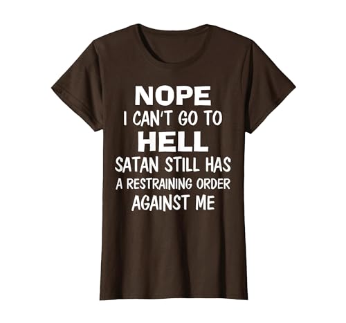 Nope I Can't Go to Hell Satan Still Has A Restraining Order T-Shirt, Women, Brown, X-Small