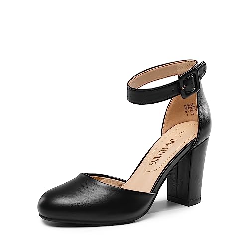 DREAM PAIRS Womens High Heels Closed Toe Court Shoes Block Ankle Strap Ladies Sandals for Wedding,Size 6.5,Black-Pu,Angela