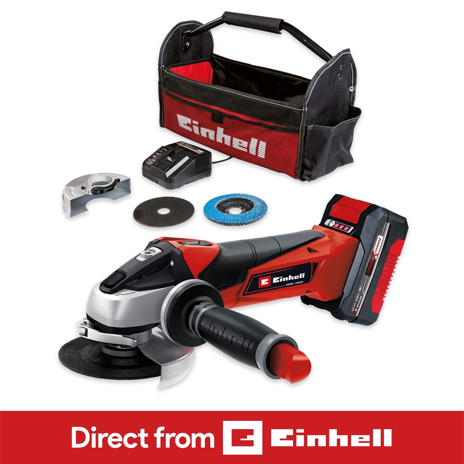 Einhell Power X-Change 115mm (4 Inch) Cordless Angle Grinder With Battery And Charger - 18V Disc Battery Grinder For Cutting, Grinding And Polishing - TE-AG 18/115 Li Power Tool Set With Storage Bag