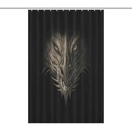 Nugier Shower Curtain with 12 Hooks, Waterproof Bath Curtain Liner Machine Washable Polyester Tub Stall No Smell 35"(W) x71(H) Print Retro Vintage Scary Angry Dragon Head On Black