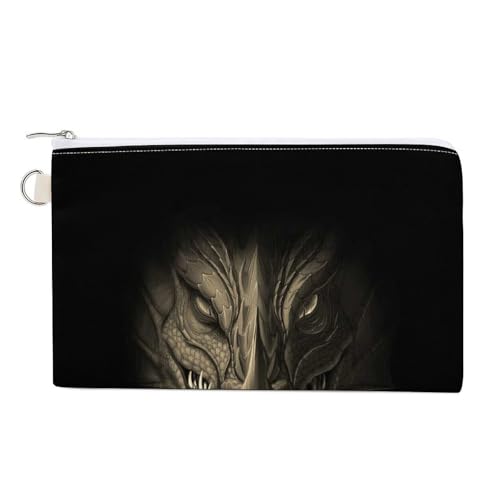 Soft Clutch Wallet, Canvas Zipper Makeup Bag Women Handbag Holder Purse for Bills Crash Credit Coin 7.4x4.6 in Print Retro Vintage Scary Angry Dragon Head On Black