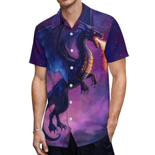 Angry Purple Dragon Men's Button Down Shirt Casual Short Sleeve Shirts Beach Summer Shirt with Pocket