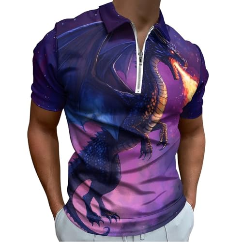Angry Purple Dragon Men's Short Sleeve Polo Shirts Casual Zippered Golf Shirt Slim Fit T-Shirt Tops