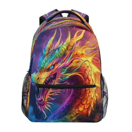 Backpack Angry Rainbow Dragon Bookbag Rucksack Personalised Durable Daypack, For Outdoor, Laptop, College, Work, Travel