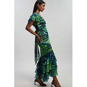 Blue Vanilla Animal Print Shirred Long Sleeve Midi Dress