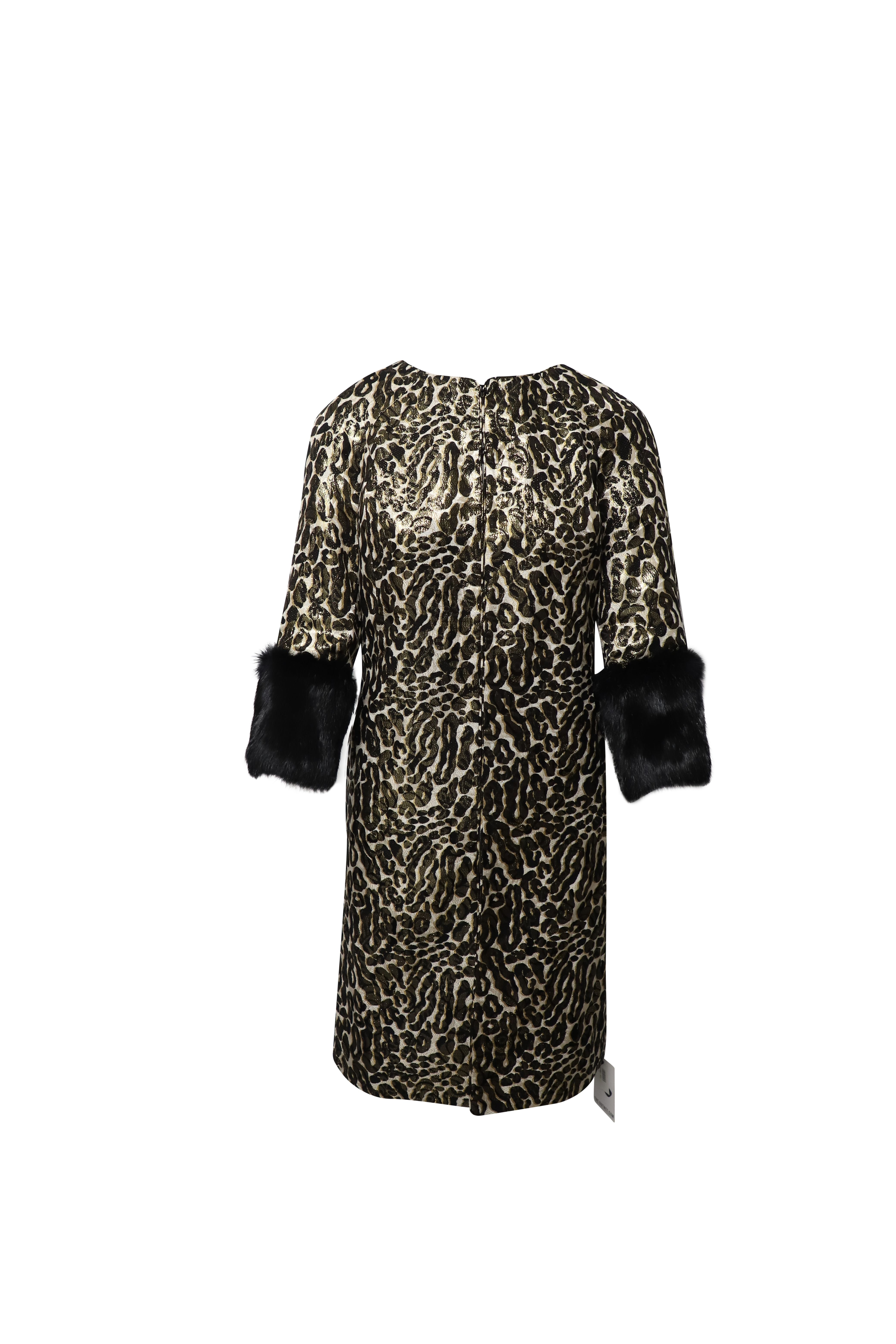 Tory Burch Womens Animal Print Jacquard Coat with Fur Sleeves in Multicolor Silk - Multicolour - Size X-Small