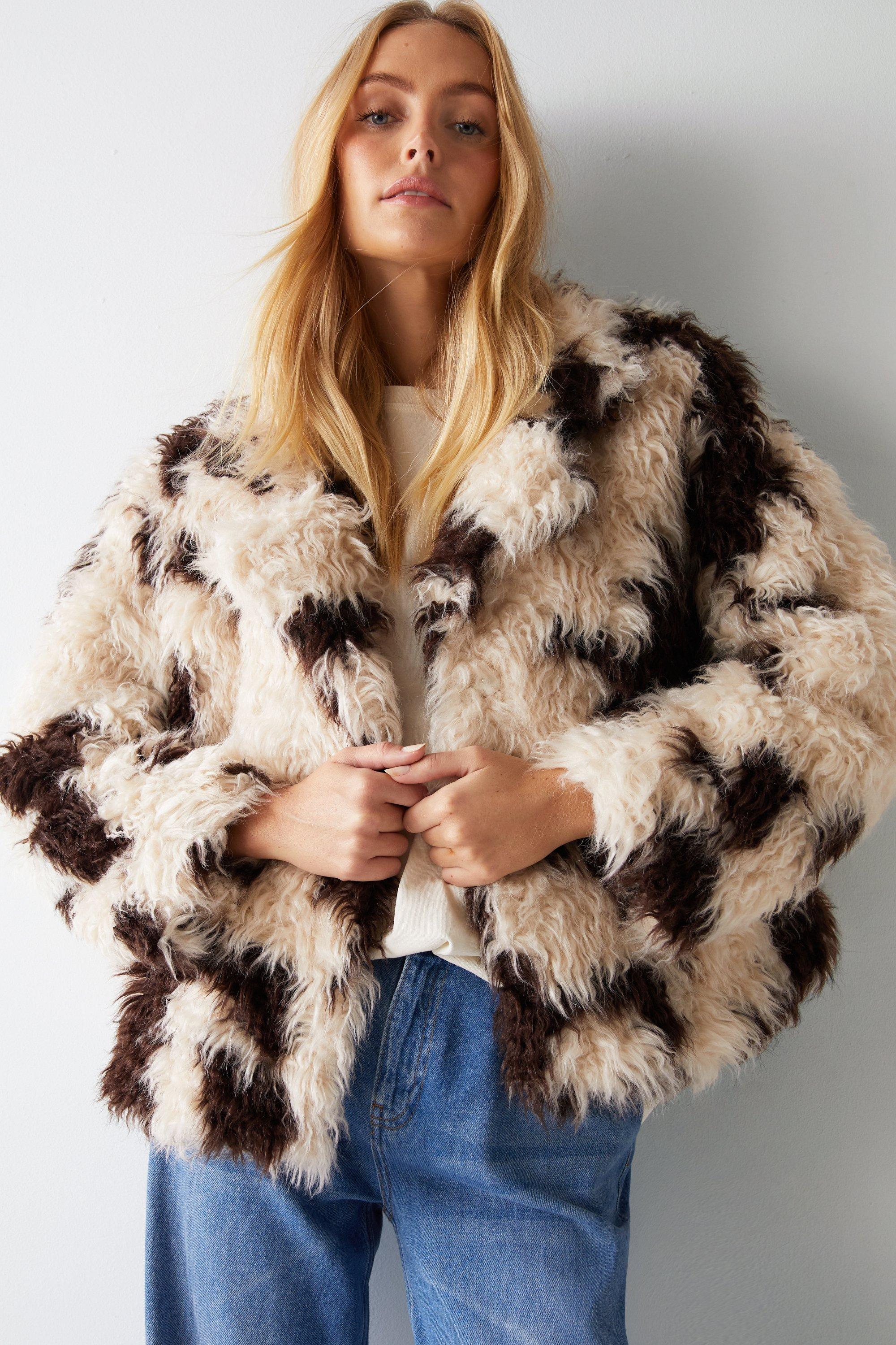 Premium Curly Animal Print Fur Coat