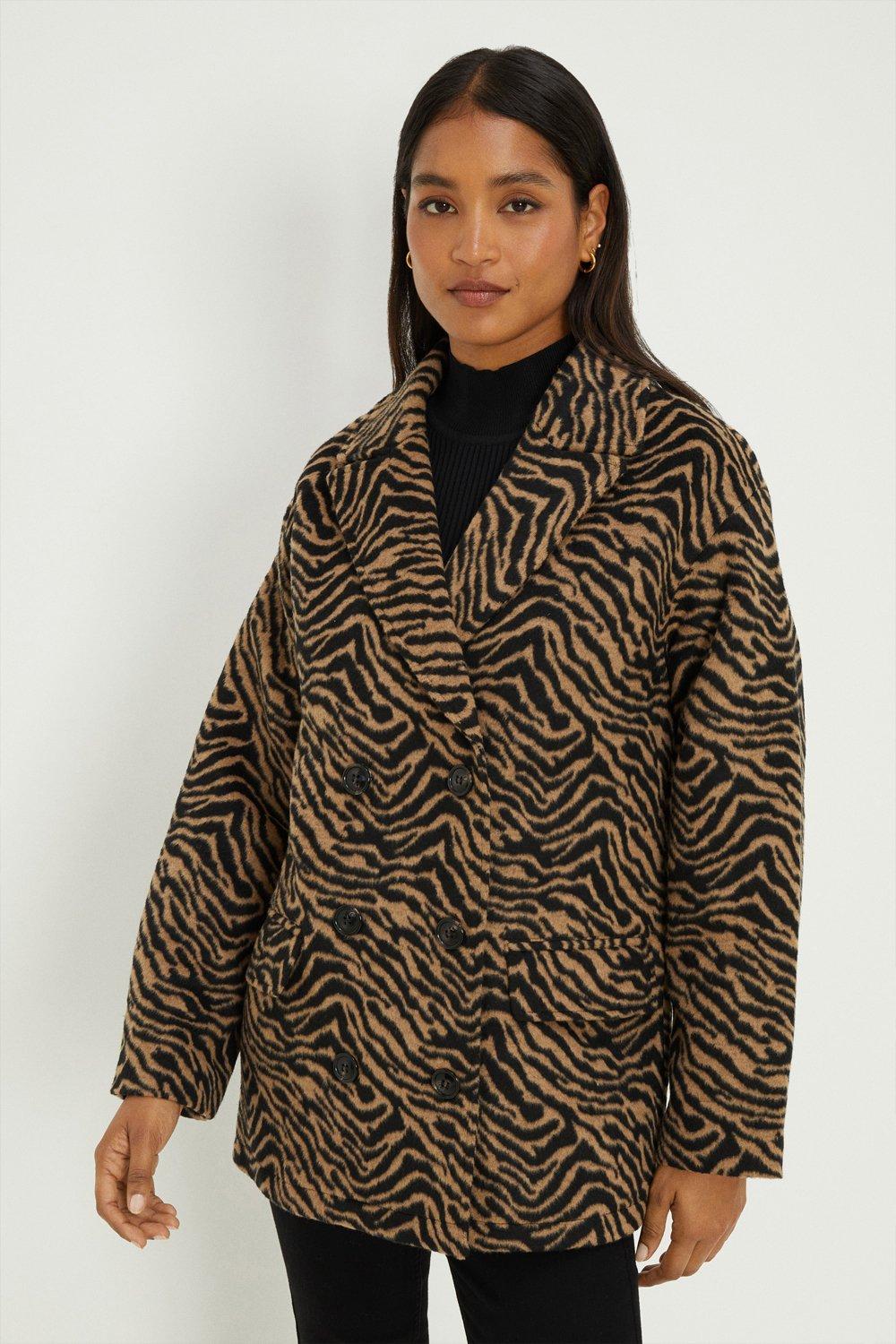 Animal Print Double Breasted Coat